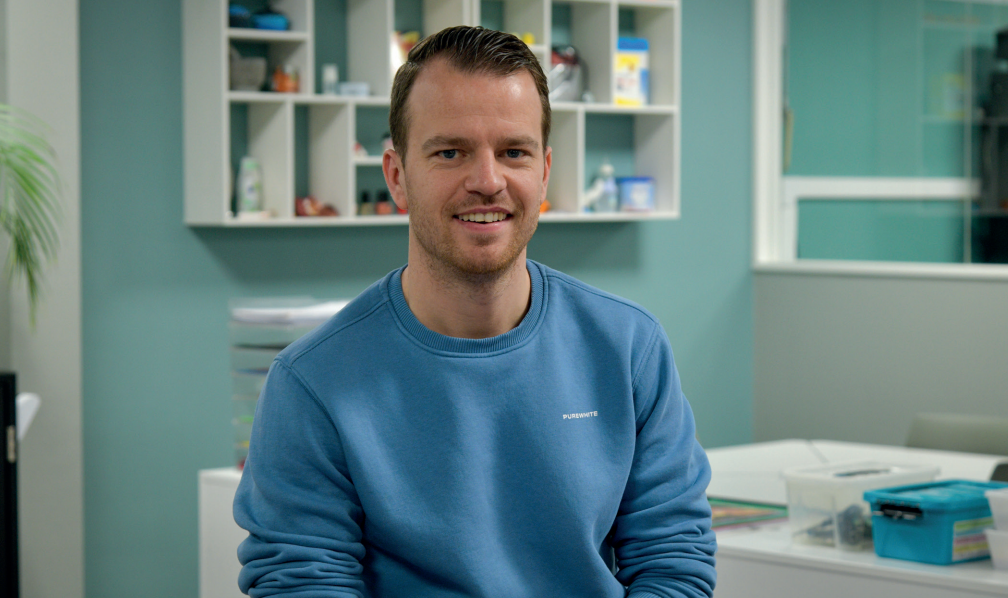 Niek van Enk (27) uit Kampen werkt sinds augustus 2021 bij Groevenbeek. In zijn derde schooljaar geeft hij de vakken mens & maatschappij, geschiedenis, aardrijkskunde, dienstverlening en productie (d&p). Zijn hoofd dienstverband is op het vmbo in Putten; ook geeft hij zes uur aardrijkskunde aan de vmbo-kant in Ermelo en is mentor van een 1TL-klas (theoretische leerweg) in Putten. Hij werkt vier dagen in de week, wat neerkomt op 0,8 FTE. “Groevenbeek Putten is een kleinschalige school, met oog voor iedereen. Ik ben met open armen ontvangen, alles werd voor mij geregeld als ik ergens tegenaan liep. Het voelt als een warm bad. Ik ken de leerlingen en als werknemer word ik goed begeleid, waarbij ik ieder jaar cursussen en trainingen krijg om mij door te ontwikkelen.”